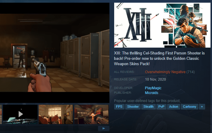 The point is, despite XIII being one of my – no, scratch that – my favourite first-person shooter game as of this moment, I had no idea that a remake had been released in November 2020, and that’s a real shame, because 2020 was already bad enough without me missing out on one of the few good things to come from it. And XIII is a game that could use a remake; it was a solid, fun, well-plotted game that didn’t get a huge amount of attention when it came out. So when I found out that I had missed its debut by a month, I was pretty disappointed to have missed the opportunity to relive the glory days, add my two cents to the discussions and really enjoy the experience of… uh…
