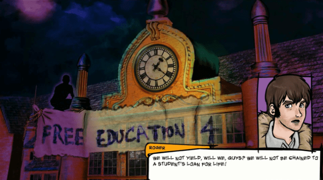The depiction of class division through the eyes of the black sheep, Kayleigh, who is emphatically not a student, but joins the protest to keep a low profile (and hopefully grab something valuable before she can escape) is hilarious, irreverent, and genuine. The other students in the game managed to be friendly, condescending, completely ill-prepared, unintentionally elitist and wholeheartedly sympathetic all at the same time, helped by the great voice-acting and the phenomenal writing. It might be a little bit janky, even by indie point-and-click standards, but The St Christopher’s School Lockdown is truly one of the best games I’ve played all year, and while it may be a little too late for it to get the attention it deserves, I still hold out hope for an eccentric lottery-winner (preferably me) to fund the sequel.