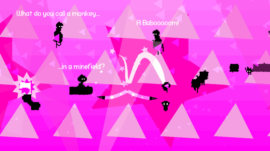 Electronic Super Joy is a fantastic game. It’s a fairly standard retro pixel-art platformer, but with imaginatively-designed levels, bizarre snippets of humour, and a soundtrack that makes ‘Rave On’ from Killer7 sound like ‘Twinkle Twinkle Little Star’. It was followed by some DLC packs that were also great, and a standalone side-game with the subtitle Groove City, but it never quite recaptured the unique mixture of charm, challenge, cheese and creativity that made the original package so appealing. Completely intentional innuendo right there, as the checkpoint/respawn noises in both games are the satisfied moans of men and women.