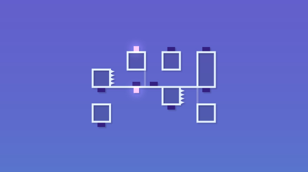 Deleveled isn’t just a palindrome for fun, but because the game is about finding a path that works in both directions. At all times, you are in control of two separate… blocks; look, this game isn’t exactly heavy on story, and that’s just fine. These blocks usually have a similar starting position, but on opposite sides of the level, and with opposite polarities; the block on the top is being pulled down, and the block at the bottom is being pulled up. If they happen to touch each other, it’s game over for good… by which I mean the level restarts. Here’s a look at the fittingly basic opening level.