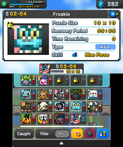 Or can you? See, not only do you need to pay to access new areas and unlock more slots for available Pokémon, but your stylus itself now has a charge! Every time you mark a tile, which is, you know, the entire gameplay experience of Picross, it takes up one energy! And your stylus only has 100 max energy at any given time, and once it’s been used, you have to wait multiple hours for it to recharge. You have to recharge the fundamental ability to be able to play the video game. Or, of course, you can spend some Picrites to recharge it immediately.