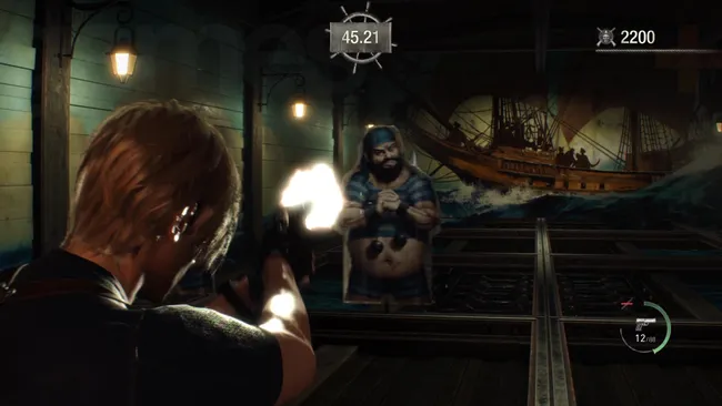 At various times (I want to say… four?) in the original Resident Evil 4, the merchant will give you some time to unwind in a shooting range. It’s a fun but not groundbreaking minigame, which I never recalled that fondly, but it also wasn’t massively difficult and you get little bottle-cap figurines of characters for doing well, which I think is how most people found out the names of most of the enemies. I don’t think ‘Dr. Salvador’ was written officially on any of the village notes. It was… fine, and forcing Leon to use different weapons was a fun way to let the player try out guns that they hadn’t necessarily purchased yet, although this is pretty much limited to the TMP, unless you somehow haven’t bought a rifle, halfway into the castle.