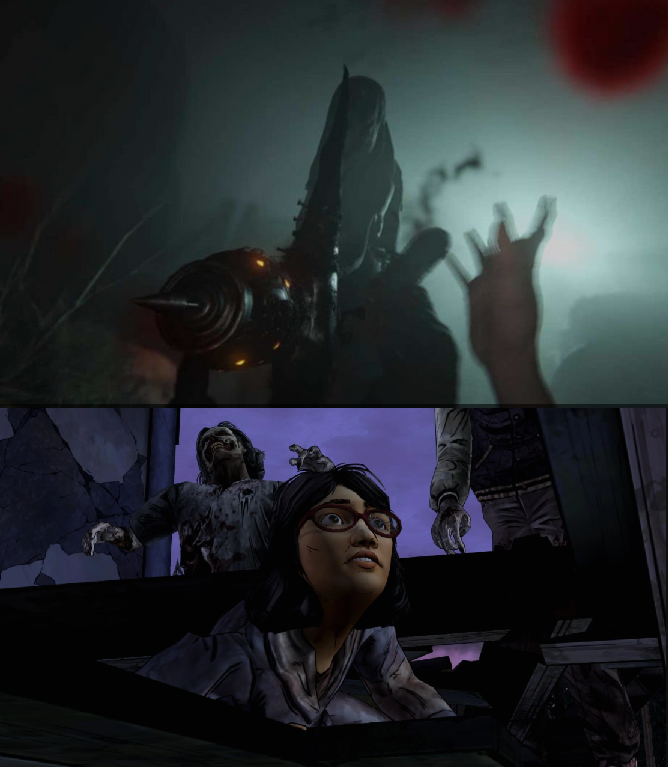The Walking Dead: Season One is still a good game, I will reluctantly admit. And it is hard to deny that even if it wasn’t, it would still be leagues ahead of its latter seasons, because the repetitive storytelling hadn’t been afforded the opportunity to become repetitive yet, and even the cutting off of the branches vis-a-vis the game being tailored to your choices was done a lot more subtly and with much more effort put in. In Season One, Episode One, you have to make the difficult choice to save Doug or to save Carley, two likeable characters with different personalities, but both of whom you would very much like to survive. And at a key point in Episode Two, when Lee is in a life-threatening brawl with a cannibal, whoever survived comes to your aid; Carley by shooting off the bastard’s ear, and Doug by blinding him with a laser pointer. They’re both awesome! … Which makes it sadder when whoever survived unavoidably dies in Episode Three, cutting off those branches again, but it was nice that they had an impact on the story while they stuck around. Not like Nick or Alvin or Sarah, who provide you with a line or two of dialogue and then die anyway.
